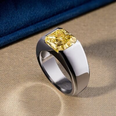 Handmade Gents ring at 8g white Gold with Yellow Sapphire